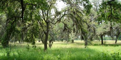 Spanish moss hung from the trees on the battleground.